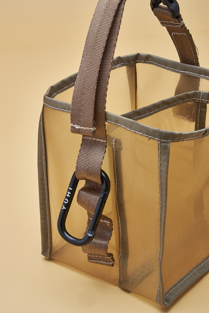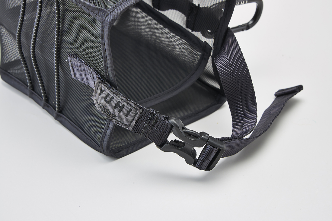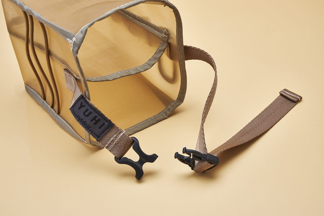 A bag made of breathable mesh fabric and high-quality nylon webbing.